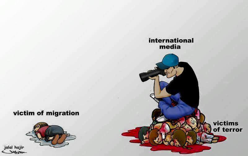 En este sentido, es a los gobiernos de las potencias atlantistas, particularmente Estados Unidos, y a sus políticas globalizadoras, a los que se les debería responsabilizar por aquél niño ahogado en el mar y por todas las víctimas de los conflictos militares de carácter geopolítico, y no al natural deseo de conservación racial o cultural entre los europeos o entre los miembros de cualquier pueblo del mundo. Es curioso que la prensa alimente este tipo de pensamiento, pero haya callado respecto a las verdaderas causas de la guerra en Siria, que haya denominado al gobierno legítimo de al-Assad como «régimen» (con toda la carga negativa que aquella palabra tiene), que haya tratado a los «rebeldes» (con toda la carga positiva-juvenil-de moda que esta palabra tiene hoy en día) como luchadores por la libertad y, lo que es más descarado aún, que nunca, pero NUNCA JAMÁS haya mencionado siquiera a la nación kurda y a los abusos que esta permanentemente sufre de parte de los gobiernos de los países en donde esta se reparte, y que ahora recién llore a uno de sus miembros, para lo cual fue necesario una foto que, cual pornografía, masturbara los sentimientos de las masas para más encima, y para peor, abordar el problema de la forma incorrecta. Aquí estamos en presencia de un problema de imperialismo y de geopolítica atlantista, no de un problema que se centre en la migración ni mucho menos de un problema de racismo.